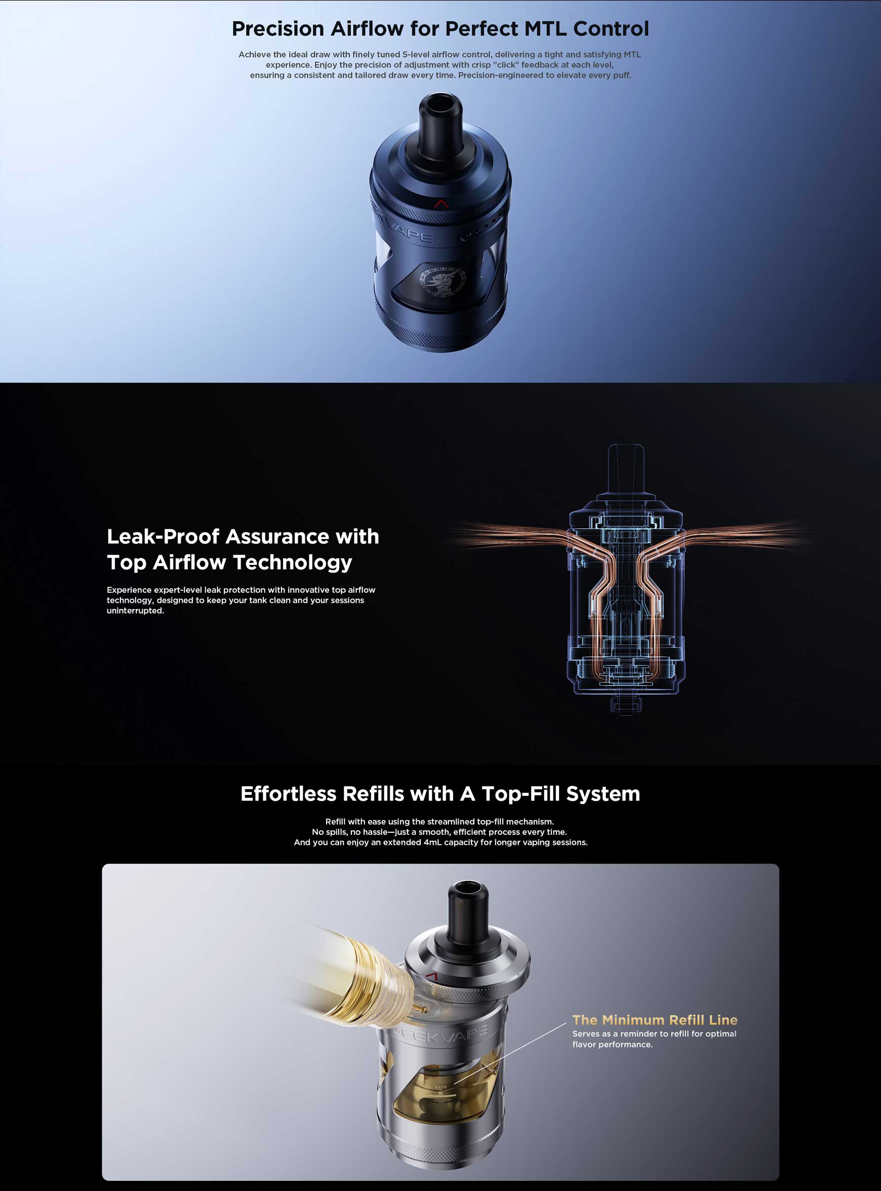 Le Z Nano MTL est idéal pour les amateurs de vape serrée et de saveurs intenses. Conçu pour l’inhalation indirecte, il offre un tirage précis, une excellente restitution des arômes et un hit en gorge marqué. Son airflow micro-perforé permet un réglage au millimètre, pour une vape sur mesure. Pratique, il dispose d’un remplissage par le haut anti-fuite : il suffit de faire glisser le top-cap pour accéder au réservoir. Un clearomiseur performant signé Geekvape.