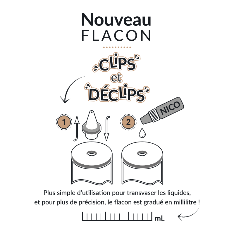 La particularité de la bouteille freaks est sa nouvelle pipette amovible. En effet, ne démontez plus le cap de votre bouteille de remplissage mais retirez la fameuse pipette afin d'y ajouter les boosters de nicotine ou mélange PG/VG de votre choix.