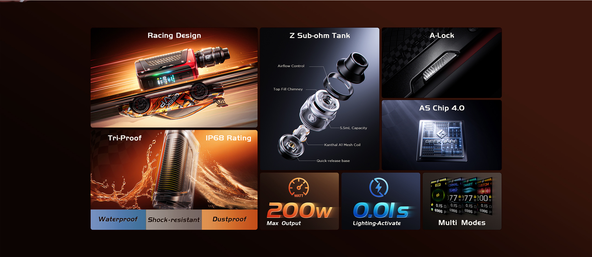 Geekvape associe à sa box son clearomiseur vedette : le Z Subohm, conçu pour la production massive de vapeur et une restitution des saveurs exceptionnelle.