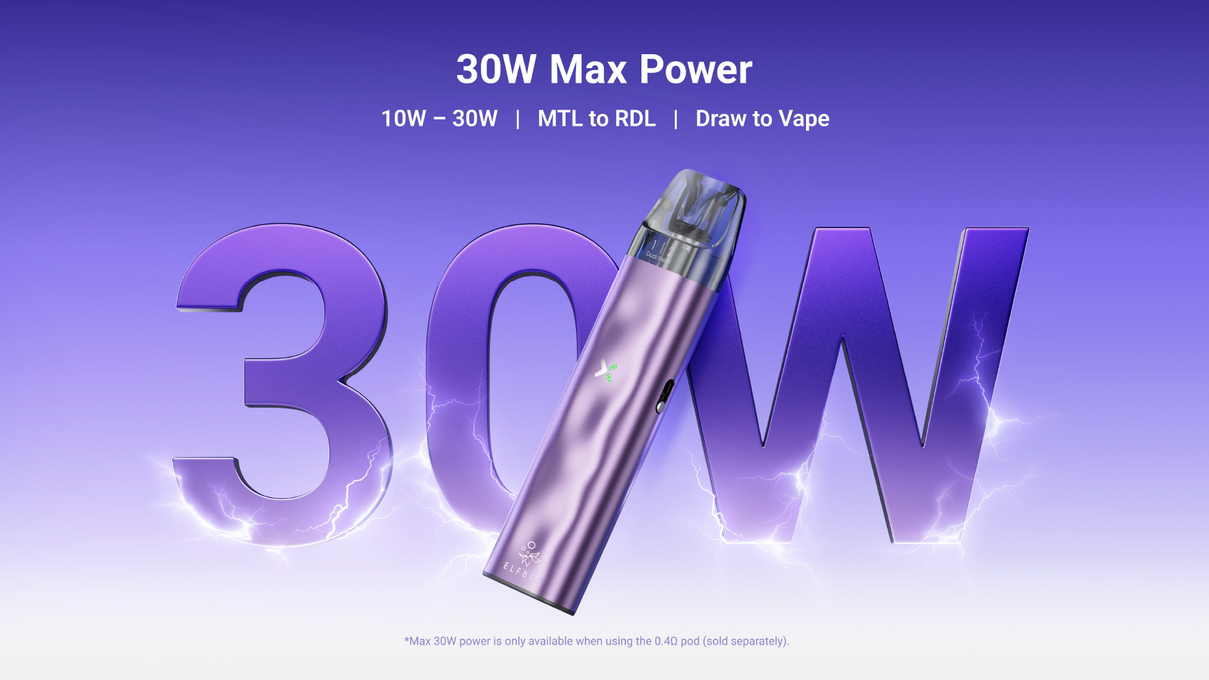 Puissance variable de 10 à 30W, tirage automatique, de MTL à RDL.