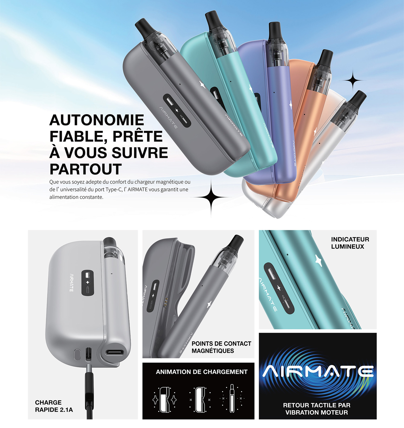 Une véritable œuvre d' art conçue pour offrir une expérience de vape ultime. L' AIRMATE allie design minimaliste et plaisir pur :