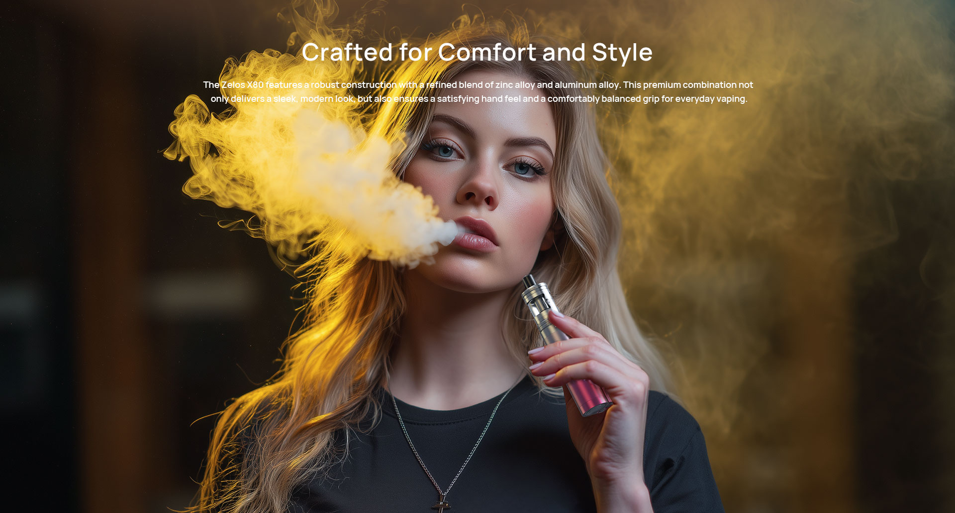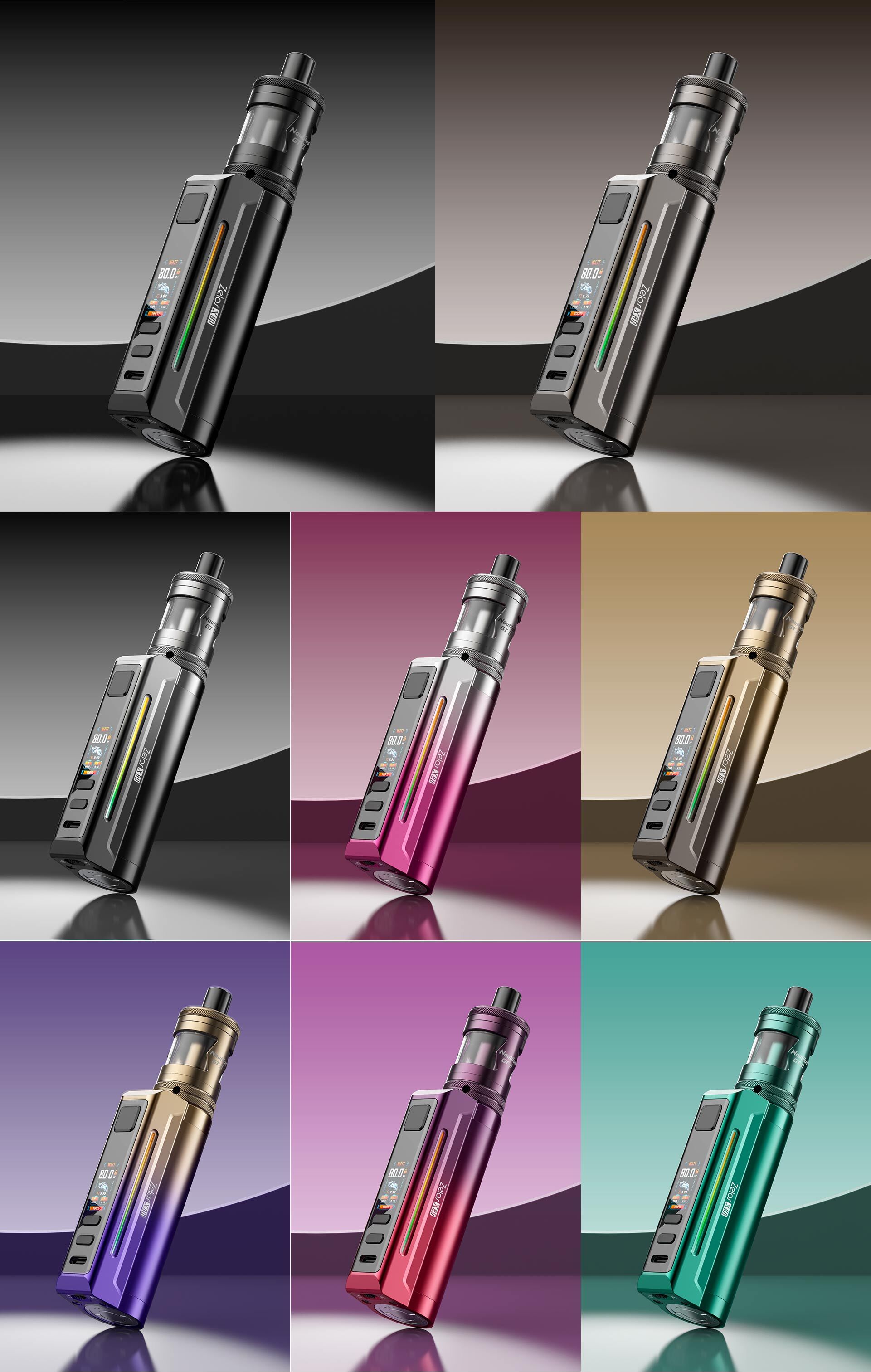 Le Zelos X80 présente une construction robuste associant avec élégance un alliage de zinc et un alliage d’aluminium. Cette combinaison haut de gamme offre non seulement un aspect moderne et épuré, mais garantit également une prise en main agréable et un équilibre confortable pour une utilisation quotidienne du vapotage.