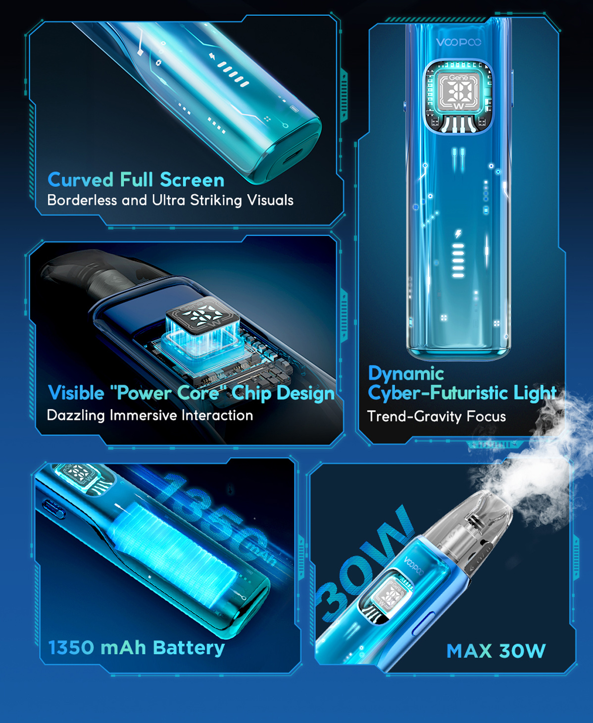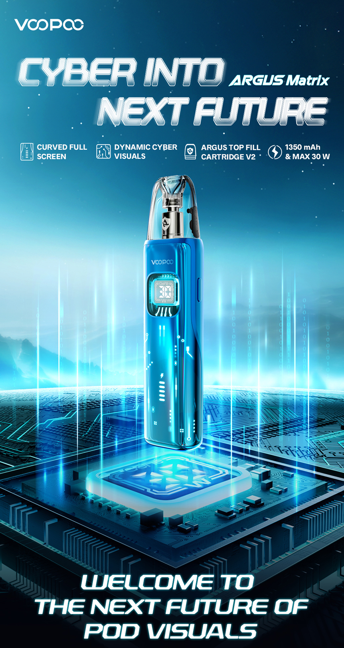 L’Argus Matrix de Voopoo allie style futuriste et performance. Son écran incurvé pleine surface offre une interface immersive avec des visuels cybernétiques dynamiques.