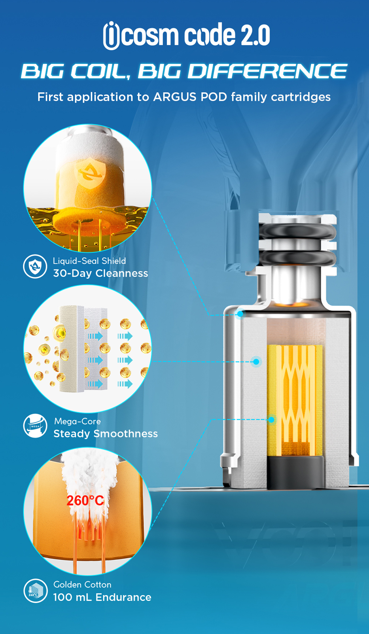 Compatible avec les cartouches ARGUS Top Fill V2, il garantit un remplissage facile et propre. Sa batterie de 1350mAh et sa puissance max de 30W assurent une vape puissante et durable.